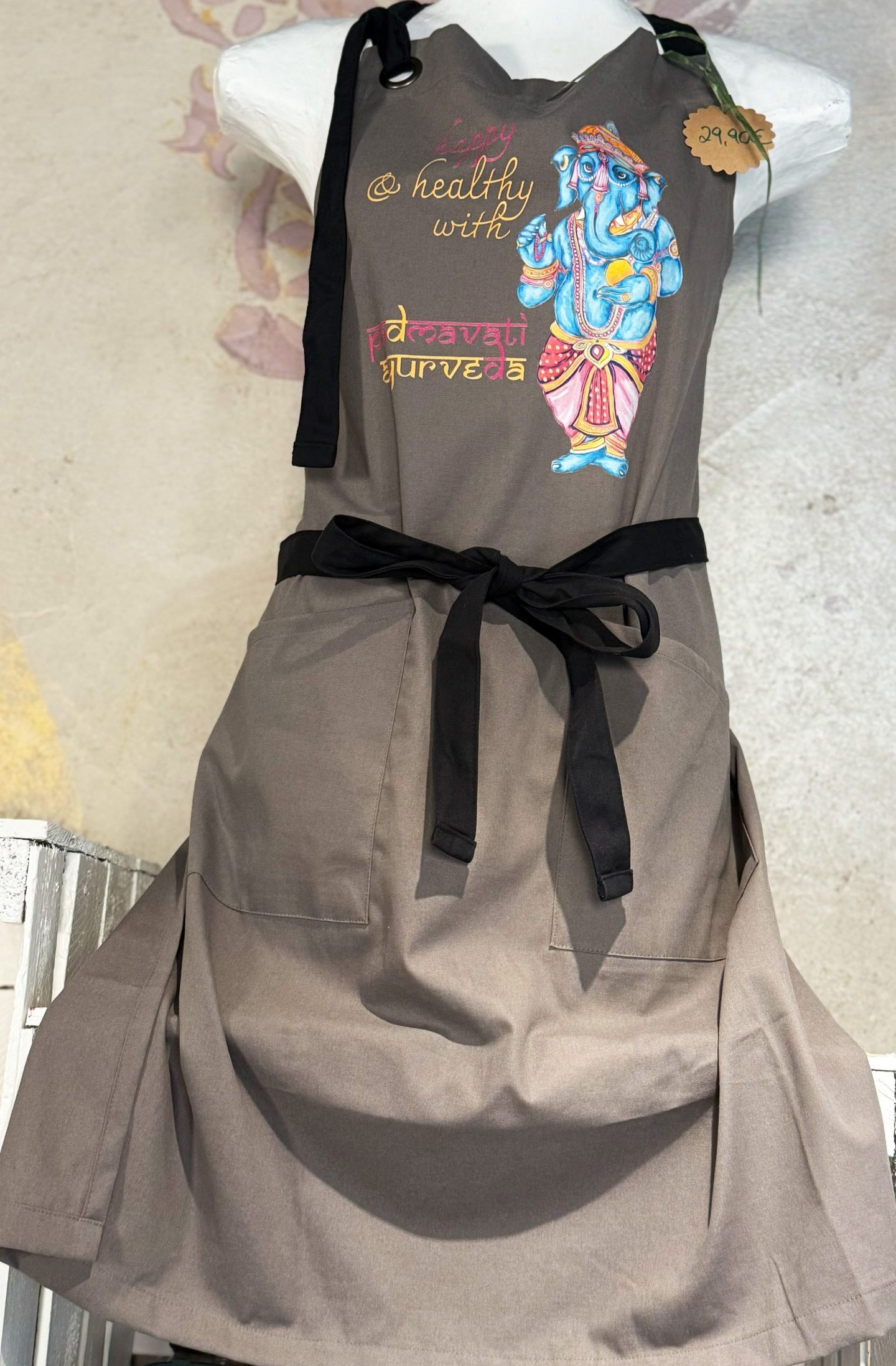 Diese hochwertige Ayurveda-Kochschürze begleitet dich stilvoll und praktisch bei der Zubereitung deiner (ayurvedischen) Lieblingsrezepte. Sie schützt nicht nur deine Kleidung, sondern erinnert dich jedes Mal daran, mit Achtsamkeit, Freude und allen Sinnen zu kochen – ganz im Sinne der ayurvedischen Lebenskunst.